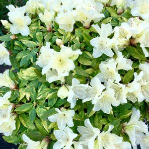 ハイヒカゲツツジもほぼ満開に‥ シャクナゲもツツジも斑入り葉なので花が終わっても楽しめます。