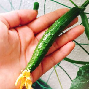 なかなか大きくならない...😭と思っていたきゅうり🥒ここまで伸びました〜12センチくらいかな? もう少し大きくなったら収穫するぞ〜!💪😂
