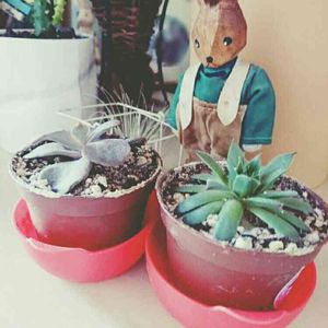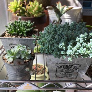 去年の夏に植え替えた子持ち蓮華 その後ほとんど溶けてしまってかわいそうな状況になっていました💦 なんとか生き残っているものを水はけの良いところに移し(左側)、1cm未満のままがんばってましたが、ここのところやっと本来の薔薇っぽい形になって来ました(右側) ٩(๑˃̵ᴗ˂̵๑)۶ °🎶 毎日見るのが楽しみです💖
