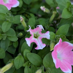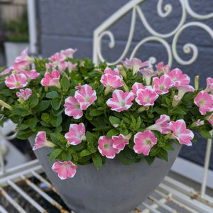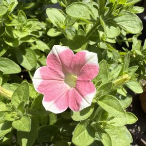 市内のパン屋さんの店頭に咲いていたペチュニア桃色ハート🩷 お取り置きしたパンを購入した帰りに撮影📷🥪 その可愛らしい姿に癒されました🌸🍀