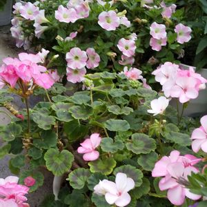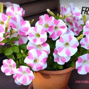 サフィニアアート ももいろハート ポット苗を4月半ばに購入し苦節2ヶ月😭 購入時から白っぽかったけど、どんどん白に...🔍 調べて肥料と日照でピンクが出るらしかったので南向きの場所に移動し液体肥料。でも少ししかピンクがでない😣 全体切り戻したらピンクがでた🙌 下側のはカリブラコア カリーマンゴー 去年挿し芽して冬越ししたものです