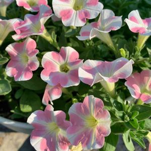 【No 297 サフィニア】 我が家のサフィニアの切り戻し前の様子です。ハート💕マーク♥️が可愛いですね。 サフィニアはペチュニアの改良品種。長く咲くところを引き継ぎ、花が雨☂️に当たると良くない弱点を補った品種です。 サフィニアの名前は「サーフィン」と「ペチュニア」を合わせたもの。花が波打つように次々と溢れるように咲くところから名付けられました。 花言葉「咲きたての笑顔」。これは応募で決まった花言葉だそうです。 暗い話題が多い昨今ですが、毎日笑顔で過ごせるようになるといいですね。
