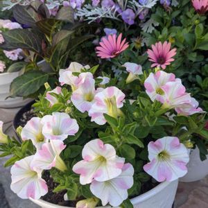 サフィニア アート ももいろハート💗 おはようございます。 今週もよろしくお願いします🤗 先日迎えたももいろハート 少し大きくなってきました。義理の父も何故かお気に入りのようでこの花は可愛いと…🤭 ハートの模様がハッキリしてくるとより可愛いのだけど…😅 ペチュニアかと思っていたけどサフィニア🏷でした。 区別が難しいですね🤔