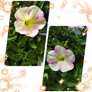 サントリーサフィニアアート 購入後切り戻し植え替え、1ケ月たった江戸しぼりさんと 5日前に購入し、今日切り戻したももいろハート💕さん比べてみました。 1ケ月でこんなに成長するんですね💕
