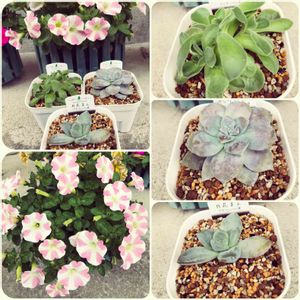 ✲゚*•(*・ω・*).•*¨* ✲゚おはようございます❣ 今朝は雨がやみ、晴れています🌞🌞 鉢物を軒下から庭へ戻しました🌼🙆 サフィニアアート ももいろハート😍😍さん 初お迎えですが、モリモリ❤️になってきました ◟⌣̈⃝◞♡ヾ(๑╹◡╹)ノ"
