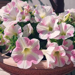 ペチュニア: サフィニア アート ももいろハート様 もも色ハートは花弁にピンクのハート模様が入る品種です。 めちゃくちゃ可愛いです😍 温度や肥料の管理がうまくできているとハートの形がくっきりと出るようです💓💓💓 このももいろハートは挿し芽から成長しました🥰