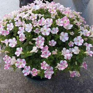 サントリー フラワーズ サフィニアアート ももいろハート ♥️ 7月25日 お値下げ品お迎え カット✂️してほねほね 8月13日 19日目 連日猛暑 最高気温35~38度 7時~18時炎天下ですが元気でびっくり。 雨がずっと降っていませんでしたが、今日留守中に、2時間激しい雷雨に当たりました((T_T))画像は雷雨後です。 花芽が小さいので、大丈夫でしょうか(・_・?) みどりのまとめにもアップします