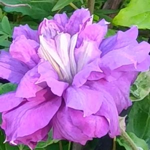 実家の母が慈しんで育てている八重のクレマチスが、高貴な雰囲気で咲いていました💜✨ 初夏のような陽射しを浴びて汗ばんだ一日。 涼し気な紫色の花弁に癒されました😊❣️