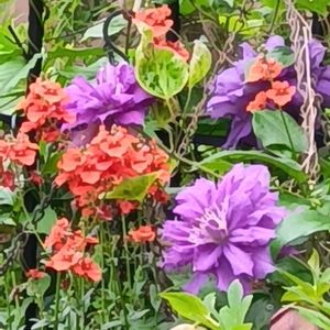 こんにちは☂️ また、雨が降ってきました☂️ 八重クレマチスがふかふかでキレイです😊 上司が会社で咲き終わったクレマチスをお家で咲かせています💕 とってもキレイです😊 お花がほんとに好きなんだなぁー と感じます。 なんにも手入れしてないのよー と‥‥本人から ハナアロエ💛🧡も咲き出しました。 通勤途中のお花 昨日pic