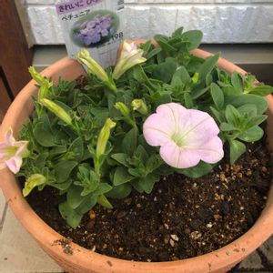 娘が選んだペチュニアもお迎え✨ ピンクと白です。 摘心した方がいっぱい咲くのかな〜 玄関の日当たりが微妙なので元気に咲くか心配。 移動させようかな〜