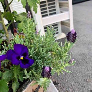 冬越しフレンチラベンダー💜 2年目に突入しました。 行き場がなくて、なんとなく 寄せ植えに植え込んだだけなんだけど まさか開花するとは😍! 嬉しい〜♪