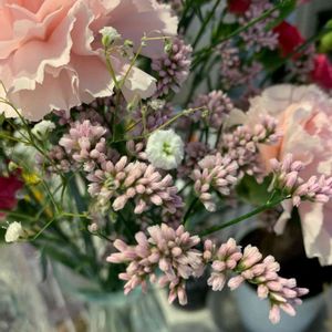 お風呂のお花変えました🛁*。🌸⋆* ピンクのつぶつぶのお花の種類分からず🥲画像色々見るからにピンクのスターチスかと🙄ですかね⁉️ ピンクのスターチス♡花言葉♡ 「変わらぬ愛」 「変わらぬ心」 スターチスかなぁ🥺?💓 ピンクのゆりの蕾⚜🌷 茎から折れてしまったゆりᒼᑋªⁿお花屋さんごめんなさい🥲 ちゃんと咲きますように(。>人<)オネガイ♡