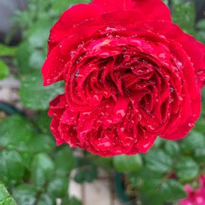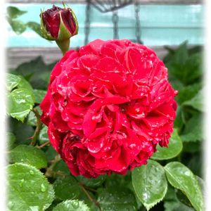 おはようございます💕 長雨にうたれながらも 美しいです💗 レッドレオナルドダビィンチ オフェリア ヒーリング ローブアランフランセーズ🌹💖