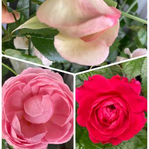 今日の我が家のバラ🌹 サントノーレ(左上) レッド レオナルドダ・ヴィンチ(左下) ダフネ(右上) サニーアンティーク(右下)