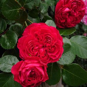 京成バラ園より レッドレオナルドダビンチ 好みのくしゅくしゅ系(*´艸`*) 真っ赤な色は一際目立っていました✨