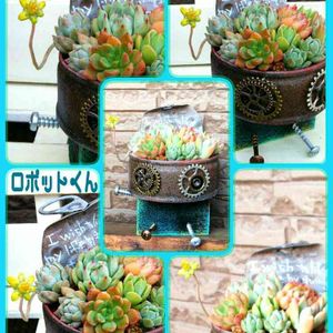 エコフェスタでお迎えした kela.kela.gaeluさんのロポットくん⭐ 詰め放題カット苗で寄せ植えして、最初から付いてた花芽が咲きました🌼(*´ω`*)🌼 可愛くてロポットくん特集picです✨