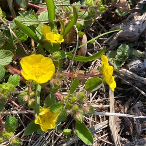 赤い軸に黄色の花🌼…よく見る花なのに…春の黄色の花は難しい〜💧 皆様にキジムシロと教えていただきました🎶