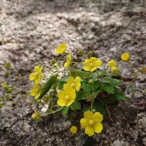 天空の楽園 野反湖から八間山の登山道で見掛けたキジムシロの花。 ミツバチ🐝が美味しそうに蜜を味わっていた。😊👍🎶