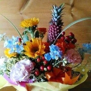 こんにちは☀️彼岸の入りですね。花屋で見つけた花パインちゃん🍍どうしても欲しくて連れ帰りました😍