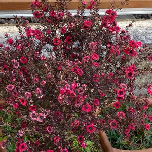 3年目のギョリュウバイ、初めて春先に剪定したら、蕾がたくさん付きました💞😍 赤銅色に紅葉した葉に可愛らしい深いピンク色の花…マッチして好みです~💖✨