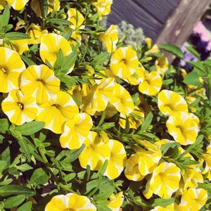 スーパーベル レモンスライス🍋 冬越し組です モリモリ咲いていましたが 今日は雨でしょんぼりです picは晴れた日ので🍋 今日も元気で頑張りましょう♥️