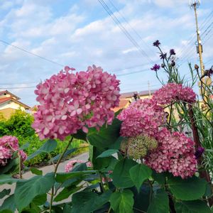( *ˊᗜˋ)ノꕤ*.゚おはよ🌱🩷☀️ 今日も暑い一日になりそう 朝の癒し🥰🩷🍃🩷🍃🩷🍃 今日は桃色の花🤗 ①咲き始めはルビー色 今は桃色🩷°・*:.。.☆ ピンクのアナベルがキレイ✨ ②ずっ〜と毎年咲いてくれる ピンク🩷のアジサイ ③ユリ今年も咲いてくれたけど虫食い今年はユリが天敵になっている蕾たち穴あきでも 開花始めました〜😥🐞🐜 ④八重咲き金魚草が可愛い🩷 ⑤ゴテチャ可愛いお花🌸💕 今咲いて居ます😊 🏷木曜日は桃色 🏷19日はピンクの日!