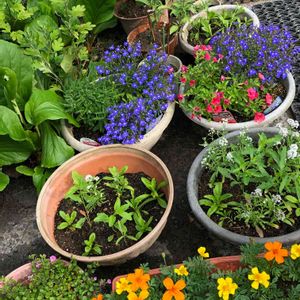配置換えして、種からのマリーゴールドも仲間入り❤️ミックスの花の種も蒔いたらたくさん芽が出たので🌱丸いところに植え替えてみました🪴