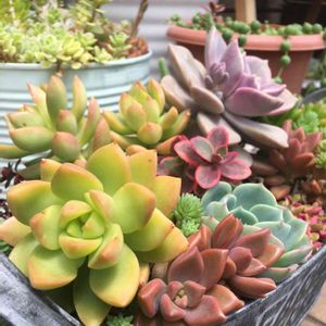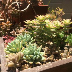 ブロック多肉寄せ植え(´- `*) 仕立て直したばかりで 雨にうたれて過酷な場所にも関わらず 元気いっぱいです