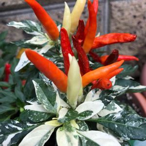 こんにちは〜😀 今日は、朝から結構きつく☔💦が降っています。 次来る台風🌀も心配😞ですが… 観賞用🌶🌿とうがらし🌶がいっぱい実ってます。葉っぱの斑点を👀💕見て癒されてます☺️💓