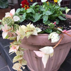 ビオラ🌸とハツユキカズラ🌿寄せ植えしてみました❣️ ビオラ🌸が盛モリ育ち大きくなったらハツユキカズラとコラボして可愛くなるだろうなぁ〜😆💓