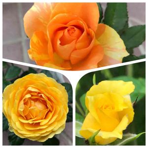ミニバラ 3種 黄色が好きみたい😊 元気がもらえる 上はマラクジャコルダナ 左 グランドゴールド(コレは色の事?) 右 ハイジー 買った当初はオレンジだったのに⁈