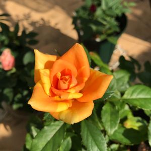 挿し木したマラクジャコルダーナ ミニバラ 開花しました💕 オレンジと黄色の絞り 苗は小さくても、魅了されます 花は4センチくらいかな? 挿し木始めて100日経ちました😊