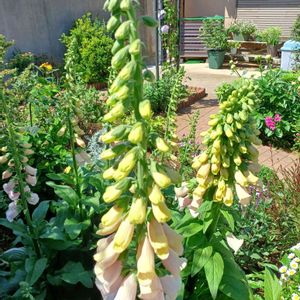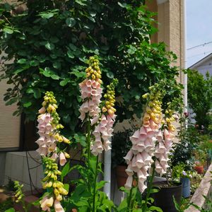 ジキタリスのピンクの中に 1つこの色💛🧡が‼️ かわいい😍 種取りがんばろー💪