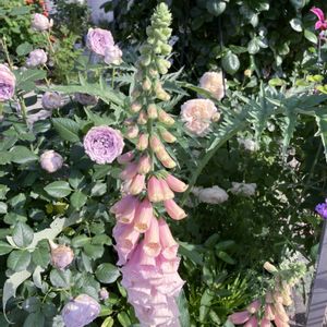 ✾今日のお花『ジギタリス』✾ こちらはこぼれ種で咲いたジギタリス アプリコットです 昨年、畑スペースにジキタリスの芽を発見!一昨年だったかも? 昨年は葉ばかり繁って花は咲かず みるみる大きくなり・・・ こんなに立派な花が咲きました💖 バックにある薔薇は『ダフネ』 コラボできたらステキだったのですが、叶わずでした😅 花壇スペースには、ちゃんと種まきしたジキタリス アプリコットが咲いていますが、こぼれ種さんのほうが立派 畑のほうが周りに何もないので、のびのび過ごせるのかな