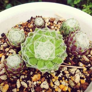 センペルビウム・巻き絹 購入してきたのは2年前かな? 昨年は土が悪かったのか、お迎えしてから全く巻き巻きしなかったのですが、ダイソーの広ーい丸いプランターへ植え替えて冬はお外で放置(本当に忘れてた程に放置) で、春を迎えて 今年は巻き巻き♪ ランナー伸ばして子株もちょこちょこ巻き巻き♪ 何が違うんだろう… 多肉の植え替えするときにふるいにかけた微塵を巻き絹のプランターに捨て… いや、入れたから土は細かくなったはず。 これだったのかな?