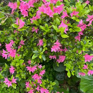おはようございます🌄✨ このツツジはクルメツツジでしょうか?高さは30cmほどです✨🌸只今満開です🌸✨ 追記:久留米ツツジと教えて頂きました☺🙇♀細かい品種までは分かりませんが、感謝です☺✨ 花言葉 ツツジ:節度・慎み ツツジ(ピンク):愛の喜び