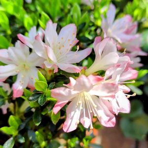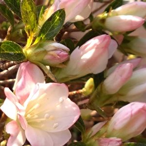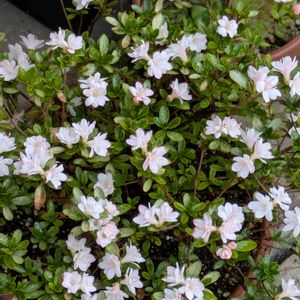 ❁.。クルメツツジ’レジナ’。.❁ 淡いピンクからホワイトの グラデーションがとっても可愛い クルメツツジ’レジナ’🌸 小輪のお花ですが 株を覆うように花が咲き誇る 華やかな植物です◌̥*⃝ 蕾も桃色で 花が咲く前も楽しめます🍑 花付きが良く 春らしい植物です♡ ぜひ鉢植えや庭植えにして お楽しみください🌱 *育て方* 日当たりが良く風通しのいい場所を好みます。 水やりは土の表面が乾いたらあげてください。