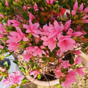 久留米つつじ キリンピンク これも植木市で😺 小さな蕾がたくさんついてます 満開の姿がどうしても見たくなって さっそく鉢植えにしました💛