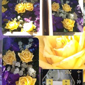 花手水💜🌹🥰💛🤍 💛バラ 🤍アストランチャ・スノースター 💜パンダ 来年の事を言えば👹鬼が笑う 鬼と一緒だって良い みんなで笑顔の年を迎えるため 神社へ赴き 令和7年のお護摩祈祷を頼んできました 引き換え番号 7 😲 Lucky SEVEN 良い予感♫♪♬ 🏷7の付く日は七色の日