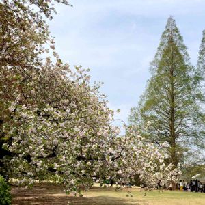 新宿御苑の透け透け③ これは、遠くから撮っただけで名前は確認しませんでした🙇🏻♀️🙇🏻♀️🙇🏻♀️ モミジバスズカケノキかなぁ、、、😌? まわりの人と比べてわかるように、かなりの大木。枝ぶりも凄いですね。 こんな大木の透け透け、今だけです❣️