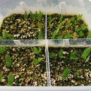 タッパに撒いてから半年。 7月以来の投稿。 4種類。 ↖️ダヴィディ×バッテニアエ ↗️ムリアナ×ダヴィディ ↙️アルバンス×ムリアナ ↘️バッテニアエ×ダヴィディ 右上以外は発芽率はあまり良くなかったものの4枚目の葉を展開し始めてます。 右上のムリアナ×ダヴィディは発芽が遅かったのでまだ葉は3枚。 個人的に楽しみにしてます。 種はまだあります。 まだまだ・・・ ・・・面倒だな。 ベランダではボルシー系が咲き始めてます。 他にもチラホラ花芽が見える。 受粉どーしよ・・・