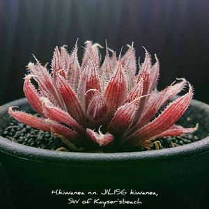 H.blackbeardiana で入手したH.albansの小さい方。 大きい方は中途半端な所から子株吹きまくり始めて形崩れ中( ノД`)… 直射日光にあまり当たらない所にいるせいか徒長気味。