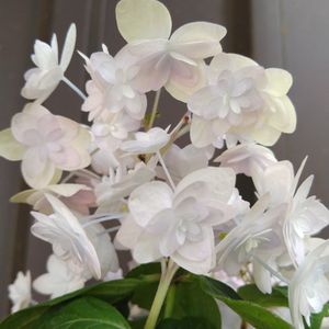 ヤマアジサイ 綾 薄いピンク色だったはずが今年はほぼ白になった 早咲きのようでもう咲いている