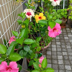 おはようございます 毎日ベタベタジトジトムシムシで嫌ですね~ ハイビスカス🌺はご機嫌🥳 ピンクが4個、黄色が3個、白が2個、赤1個 合計10個 明るい気分になります🥰