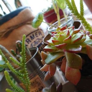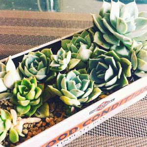 切って根が生えた子達が水分の限界を迎えていたので、いったん土に。時期はずれだけども。エケベリアだけだし、水分少ないので痩せてるけども。 落ち着いたら水あげて、根付いたらもう少しマシになる予定。