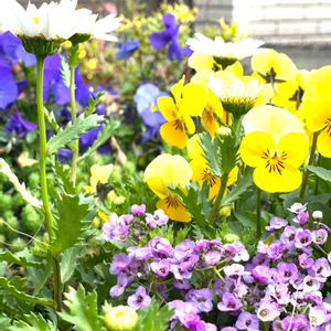今年はピンクが多めの花壇です。 パンジービオラを少ししか植えてなくて土が丸見えのなんだか寂しい感じ。 今更ながらお買い得ビオラ探して植えようかなぁ。。。