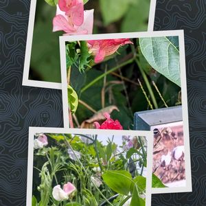 🏷️今日のお花 ノイバラ 今日の庭より ❤️去年の自家採種から11月頃に蒔いた、鉢植えのスィートピーが咲き始めました。 これからたくさん咲いてくると思うと、嬉しくなります。 🍓🥔裏庭で育てているイチゴとソラマメの花。 🤍家の裏にいつの間にか育ったノイバラ。 去年5/20撮影