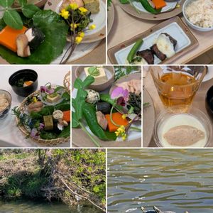 Googleフォトが「この日を覚えていますか?」と題してコラージュしてくれました🍀😊✨2025年4月4日🧑🍳人気料理店𓌉 𓇋暁さんのお料理教室を受講しましたψ(´ڡ`♡) オイシー♪自家製のお花💛コウサイタイ~♬♬近所の小川で亀🐢と奥の方で🦆カモを見かけました🚶 💕Good memory☆(*˘︶˘*).。.:*♡