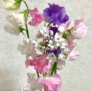 親の介護で東京と田舎を行ったり来たり。ようやくお花をお部屋に飾りました🥰 スィートピーが良い香り💕