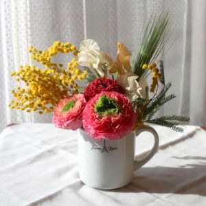 仕事帰りに寄ったお花屋さんで、今年初のミモザを見つけて、嬉しくなって即買いしました。 先週、買ったラナンが元気なので器を変えて、アレンジし直し💛💛 お花を飾りながら、私にとっては遠い春を待つ。 もう少し、もう少しと春を待つ☘️☘️